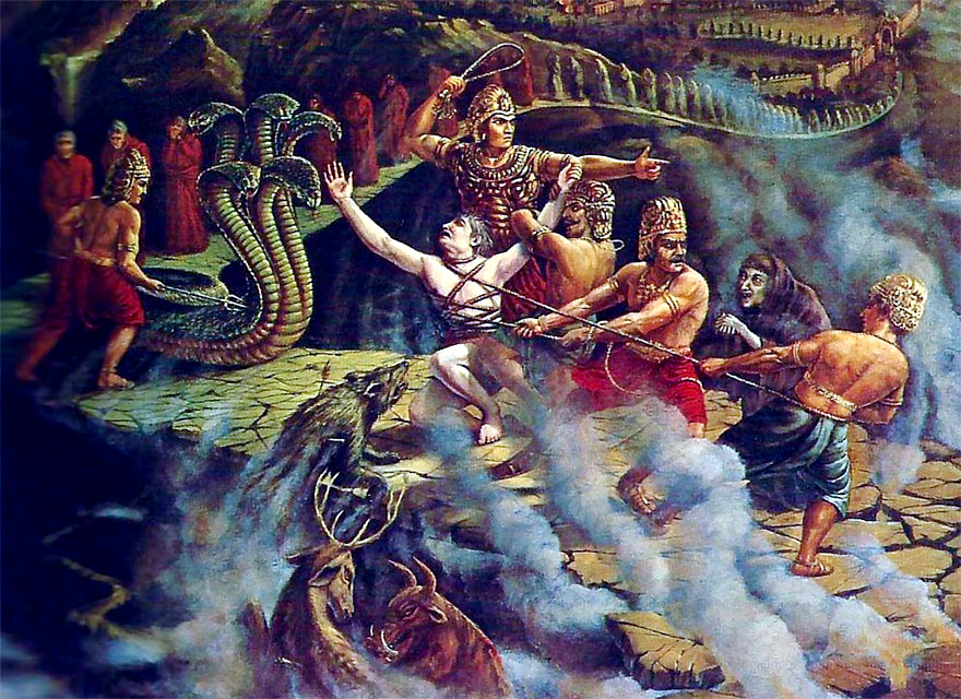 The Twenty-sixth Chapter describes how a sinful man goes to different hells, where he is punished in various ways by the assistants of Yamarāja