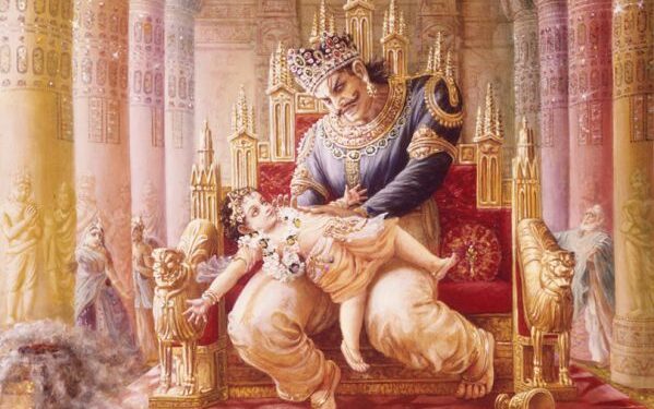 When Hiranyakasipu called his son before him, he challenged his son just like modern-day atheists. After Hiranyakasipu gained his benedictions from Lord Brahma, he went on a rampage to destroy all forms of worship to Lord Visnu. But, although he had control over everyone in the universe, he failed to control his son, Sri Prahlāda.