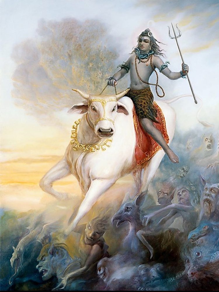 Sri Krsna appeared in this world and engaged in rāsa-lilā pastimes with the gopis, headed by Sri Rādhikā, in Vrndāvana. One day, Lord Shiva, the foremost Vai}nava,with a desire to see Krsna’s rāsalilā pastimes,assumedthe form of a cowherd girl and entered the arena of the rāsa dance. However, he was immediately discovered by the gopis of Braja and later on, his actual identity as Lord Shiva was exposed. He was then removed from the arena of the rāsa dance. Ever since that time, he has been residing in Vrndāvana as Gopishvara Mahādeva having taken a vow to engage in the service of Sri Krsna.