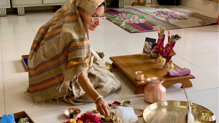 - (g) to touch the Deity with the left hand while bathing the Deity,