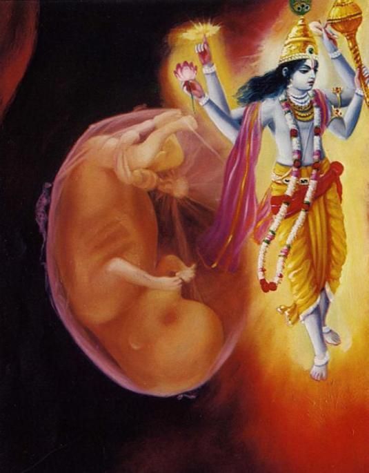 Fallen into a pool of blood, stool and urine within the abdomen of his mother, his own body scorched by the mother’s gastric fire, the embodied soul, anxious to get out, counts his months and prays, “O my Lord, when shall I, a wretched soul, be released from this confinement?”