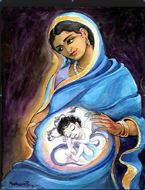 From that evening Mother Yashoda began manifesting all the symptoms of pregnancy. When the inhabitants of Vraja heard of this, they all became so happy. Mother Yashoda’s beauty grew everyday as she carried the Original Supreme Personality of Godhead within her womb.